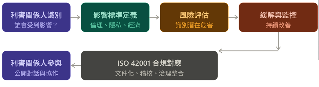 真正的 AI 系統影響評估(AI System Impact Assessment),是一套系統化的過程——識別、分析、並主動因應 AI 技術對個人、群體與社會結構可能帶來的衝擊。它的價值不在於文件本身,而在於驅動組織在每一個 AI 部署決策前,認真問一個問題:「這個系統,對誰可能造成什麼影響?」